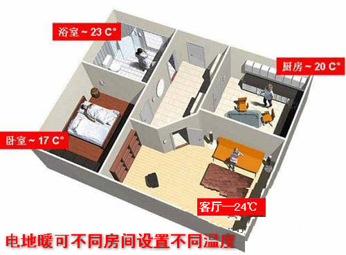電地暖(地?zé)彷楇姷嘏┦菍⑼獗砻嬖试S工作溫度上限為65℃的發(fā)熱體埋設(shè)在地板中,以發(fā)熱體為熱源加熱地板,以溫控器控制室溫或地板溫度,實(shí)現(xiàn)地面輻射供暖的供暖方式。主要有舒適,節(jié)能,環(huán)保,靈活,不需要維護(hù)等優(yōu)點(diǎn)。