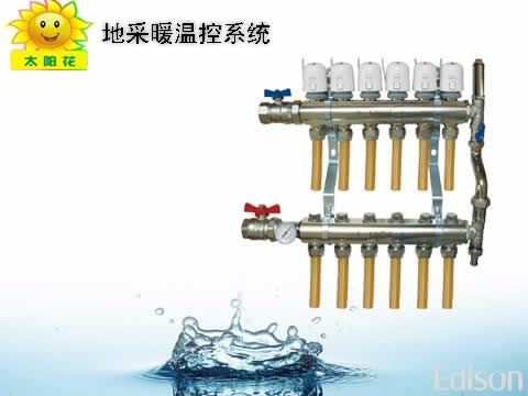 由分水器與集水器兩部分組成,分水器為供水主管,安裝內(nèi)置調(diào)節(jié)閥芯組件,能夠預(yù)設(shè)環(huán)路阻力,以使分水器下的各環(huán)路處于一種相對(duì)平衡狀態(tài),方便管路設(shè)計(jì)。集水器為回水主管,安EN215標(biāo)準(zhǔn)的回路控制閥芯組件,與電熱執(zhí)行器和溫控器配套,可自控環(huán)路開關(guān),調(diào)節(jié)室內(nèi)溫度。